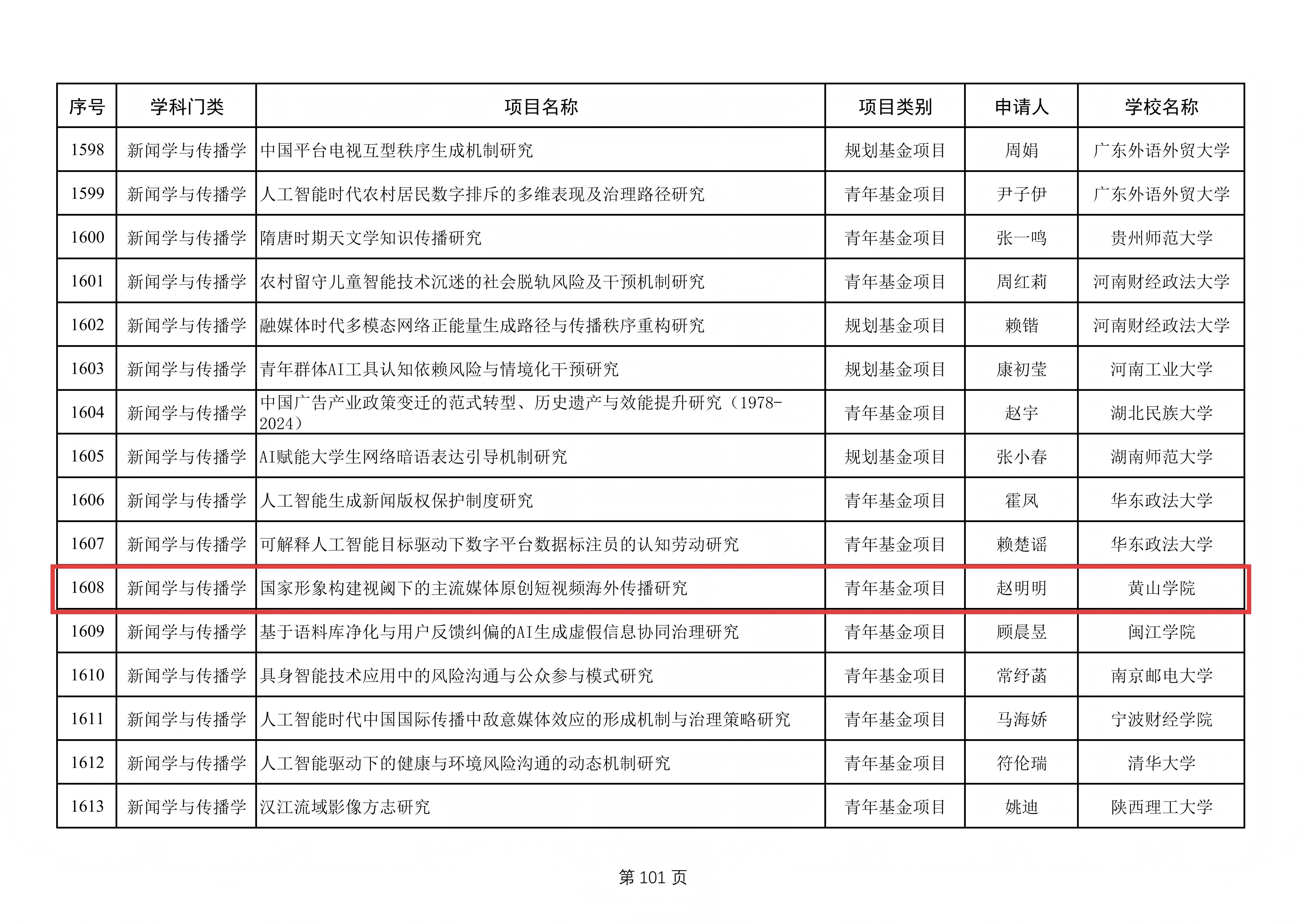 新闻学与传播学 | 国家形象构建视阈下的主流媒体原创短视频海外传播研究 | 青年基金项目 | 赵明明 | 黄山学院 |