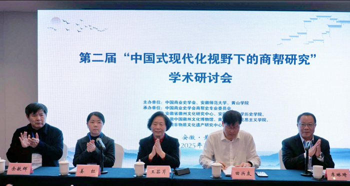 12月12—14日,由中国商业史学会、安徽师范大学、黄山学院共同主办,我校马克思主义学院、安徽省徽州文化研究中心联合承办的第二届“中国式现代化视野下的商帮研究”学术研讨会在黄山召开。来自我校以及南开大学、中央财经大学、上海大学、安徽大学、山西大学等省内外20家高校和机构的50余位专家学者参会。我校副院长姜红出席开幕式。